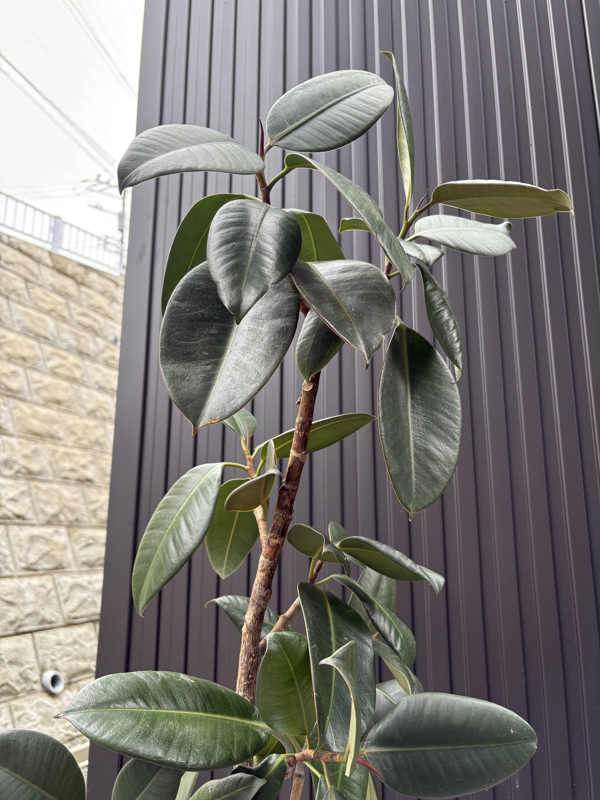 とても久しぶりに、うちのゴムの木(そろそろ名前をつけたい…)を外に出しました。